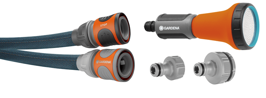 Set | Komplett mit Original GARDENA Systemteilen, Bewässerungsbrause und Hahnverbindern 18225/18220 |