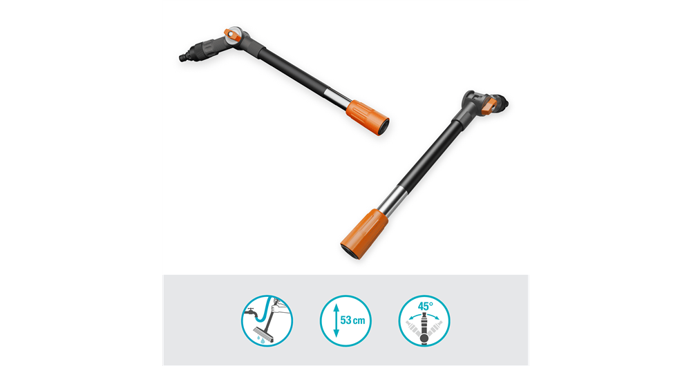 Der GARDENA Cleansystem Stiel Flex ist für die Nassreinigung unzugänglicher Flächen wie Terrassenüberdachungen optimal geeignet.