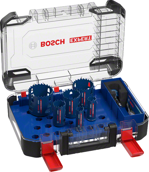 | Beschreibung festlegen | Das Set enthält: 6 EXPERT Tough Material Lochsägen (22, 25, 35, 51, 60, 68 mm) 1 Power Change Plus Adapter Sechskantschaft 11 mm 1 HSS-G Zentrierbohrer 105 mm 1 Carbide-Zentrierbohrer 105 mm |