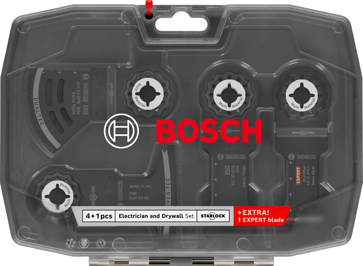 Das Bosch Elektriker- und Trockenbau-Set 2608669095 bietet dir als Elektriker oder Installateur die perfekte Ausstattung für deine täglichen Arbeiten. Die 5 oszillierenden Multitool-Sägeblätter sind speziell für das Schneiden von Trockenbauwänden, Holz mit Nägeln, Sandwich-Metall, Ziegelsteinen und kunststoffbeschichteten Platten entwickelt. Dank der durchdachten Materialauswahl meisterst du selbst schwierige Schnitte präzise und effizient. Das praktische Thekendisplay sorgt für Ordnung in deiner Werkstatt und ermöglicht schnellen Zugriff auf das benötigte Sägeblatt. Mit diesem Bosch Set bist du für alle gängigen Elektro- und Trockenbauarbeiten bestens gerüstet.